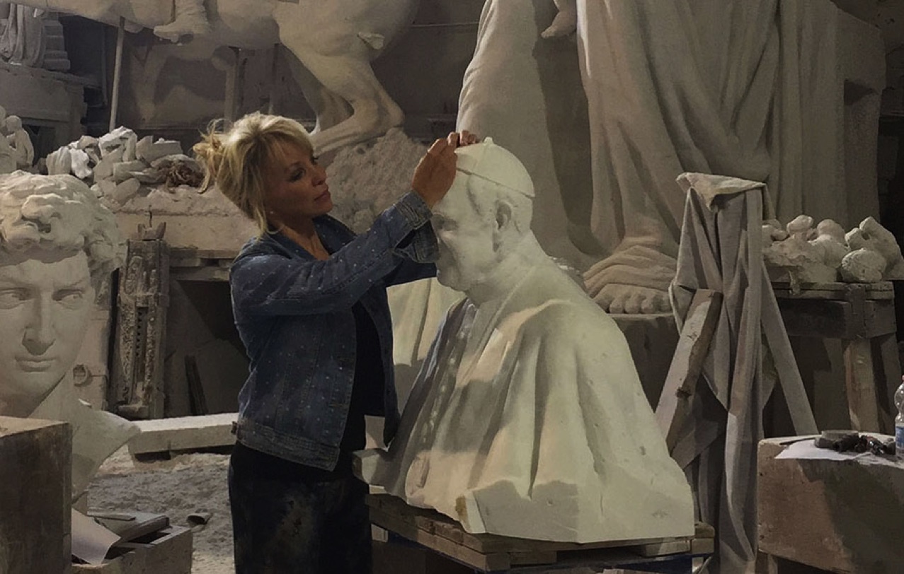 One of Carolyn's most recent work was a larger than life size bust of Pope Francis which greeted the Holy Father in the foyer of the Papal residence in NYC. Pope Francis performed a special benediction over her sculpture during his visit to the USA in 2015. Carolyn is presently sculpting the four Popes who visited the Cathedral for the entrance vestibules: Pope Francis, Pope Benedict, Pope John Paul and Pope Paul V1. The bronzes will be installed by the Fall of 2018.